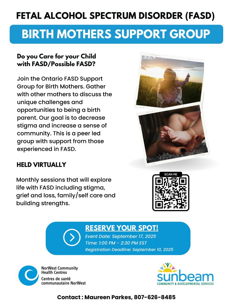 Join the Ontario FASD Support Group for Birth Mothers. Gather with other mothers to discuss the unique challenges and opportunities to being a birth parent. Our goal is to decrease stigma and increase a sense of community. This is a peer led group with support from those experienced in FASD.