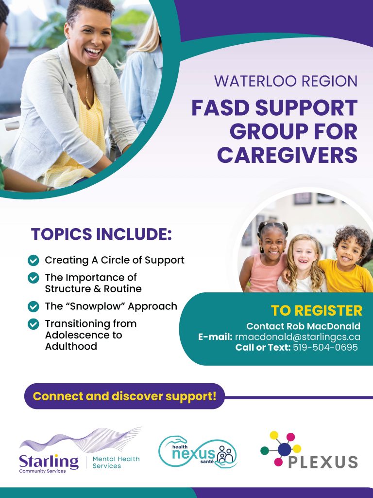 With support from PLEXUS and funding provided by Health Nexus, we are pleased to announce that Starling Community Services will be offering a support group for Caregivers of children and youth with FASD.